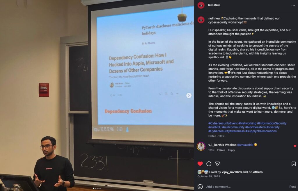 I gave a talk at the Null NEU Security Club, educating students about the emerging supply chain threats and steps that can be taken to protect against these.